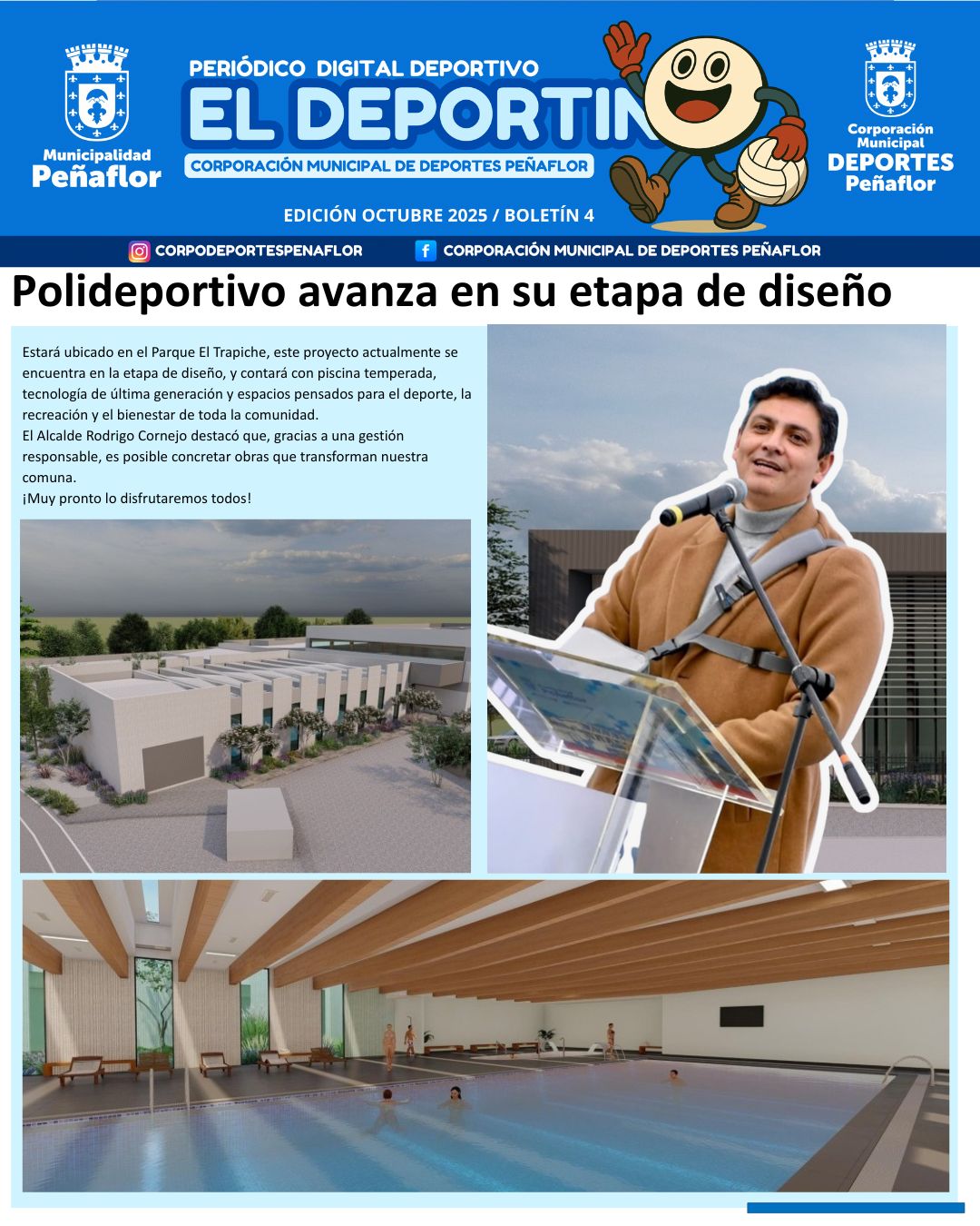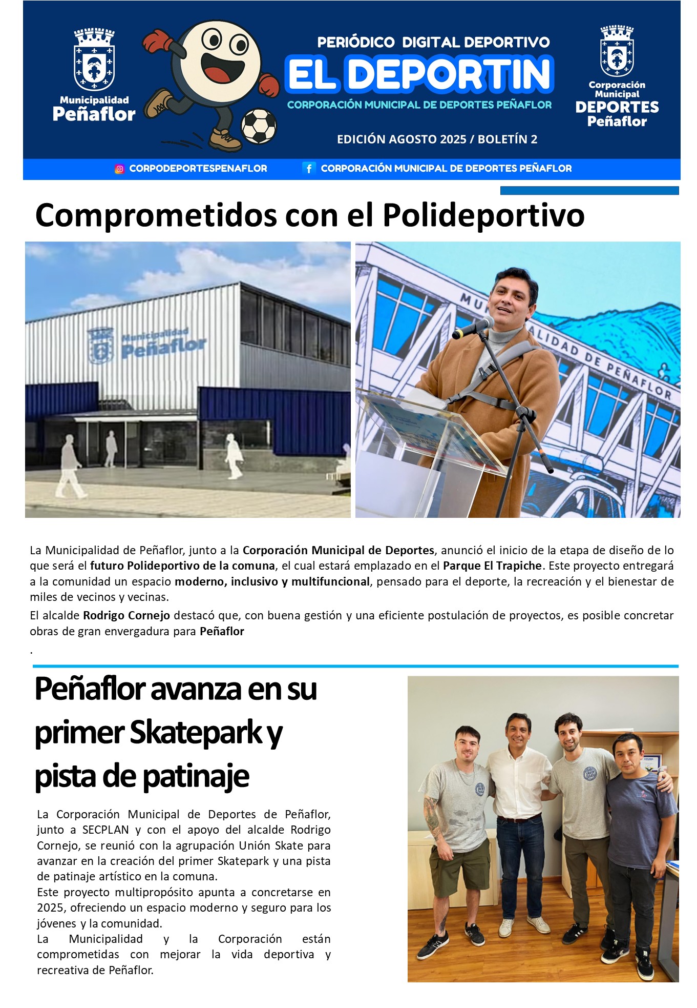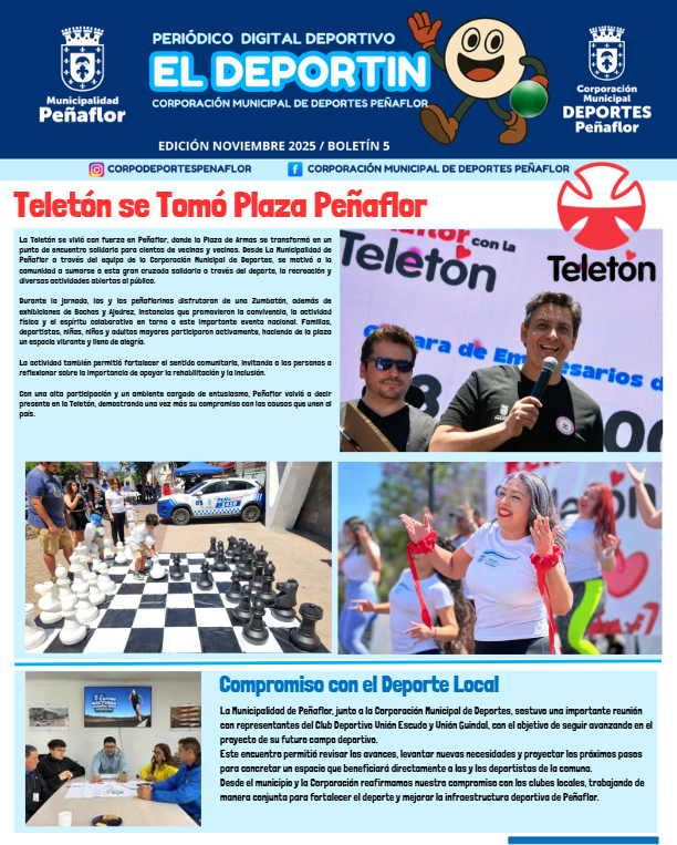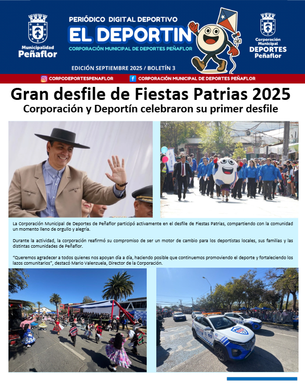 El Deportin es un periódico digital que es entregado mensualmente a la comunidad mediante nuestras plataformas virtuales, su primera edición apareció en julio de 2025.