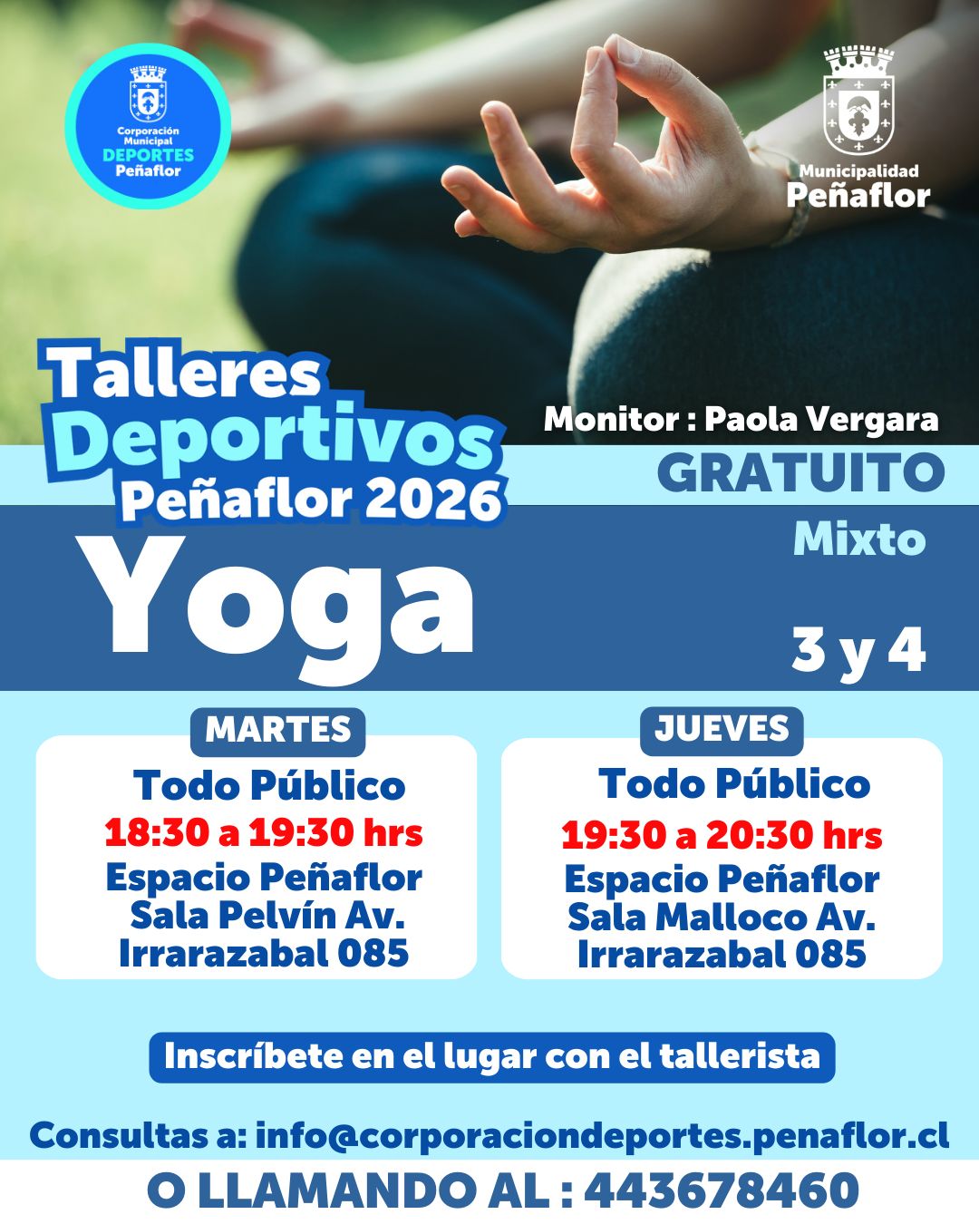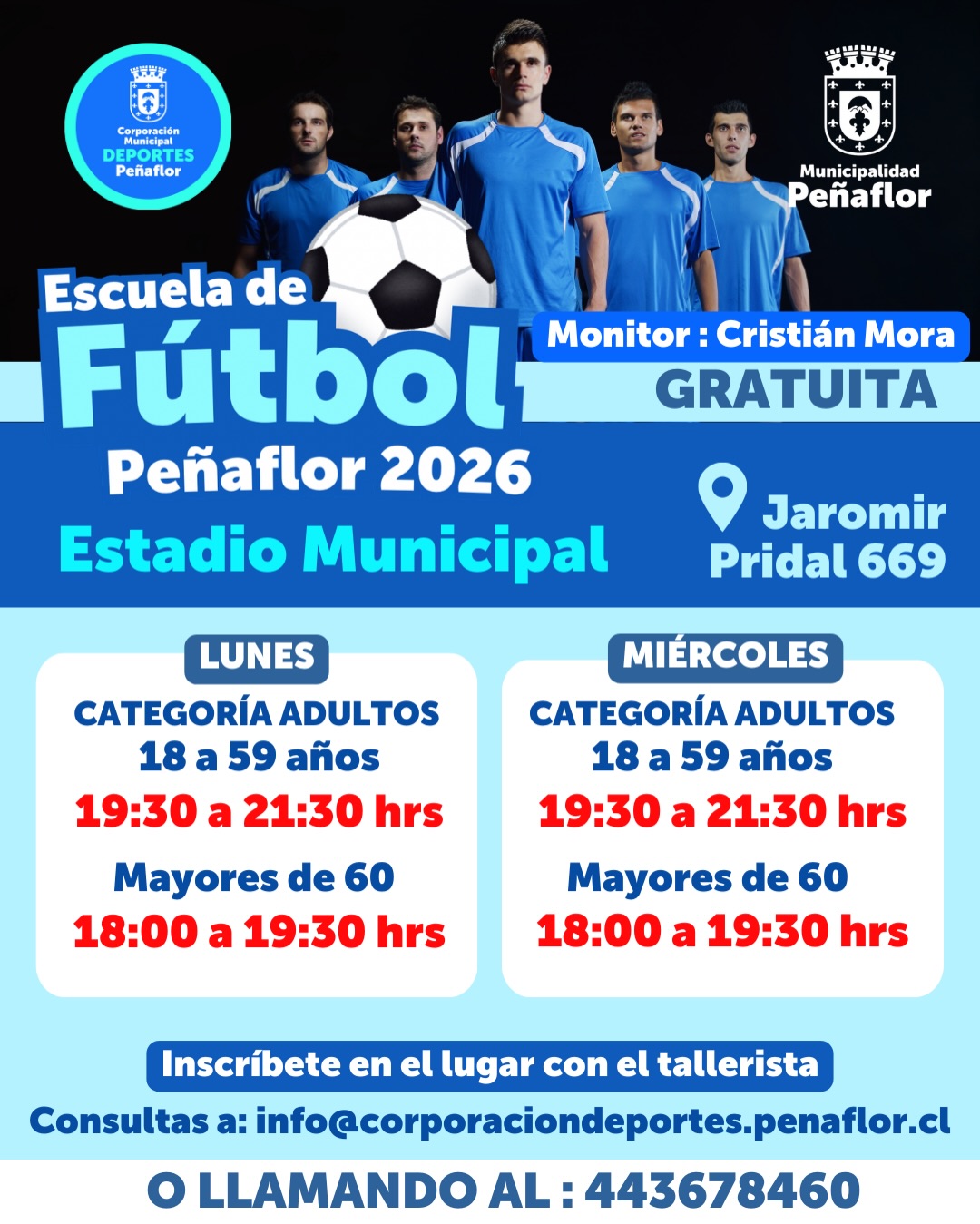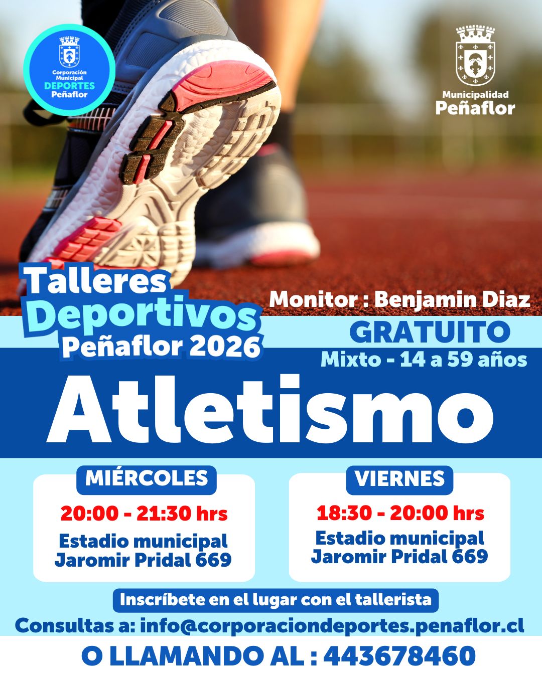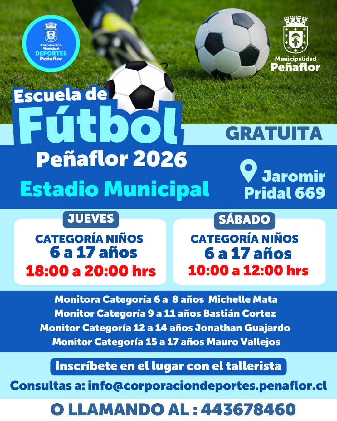 Consultas: info@corporaciondeportes.penaflor.cl