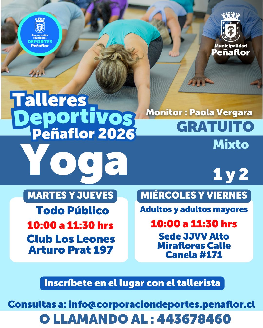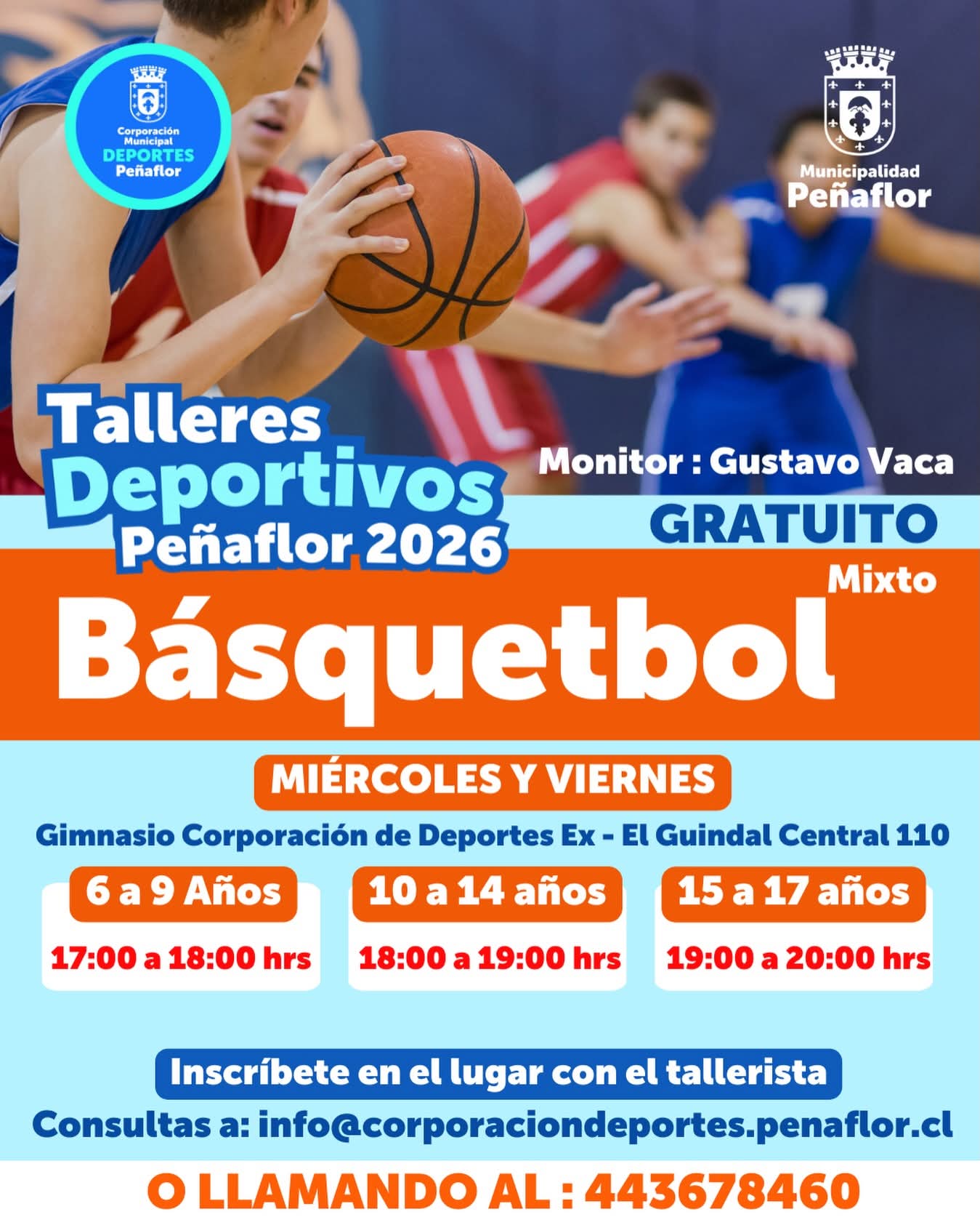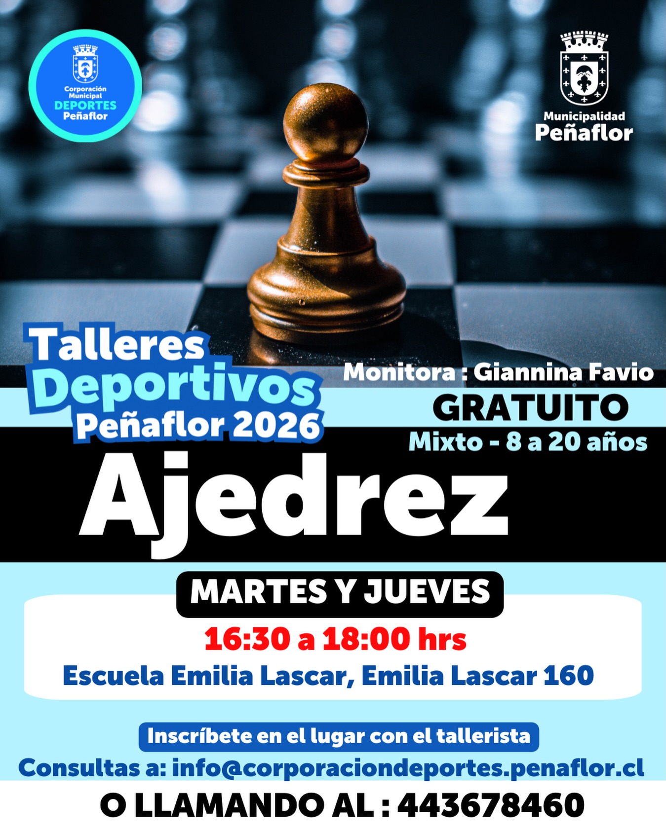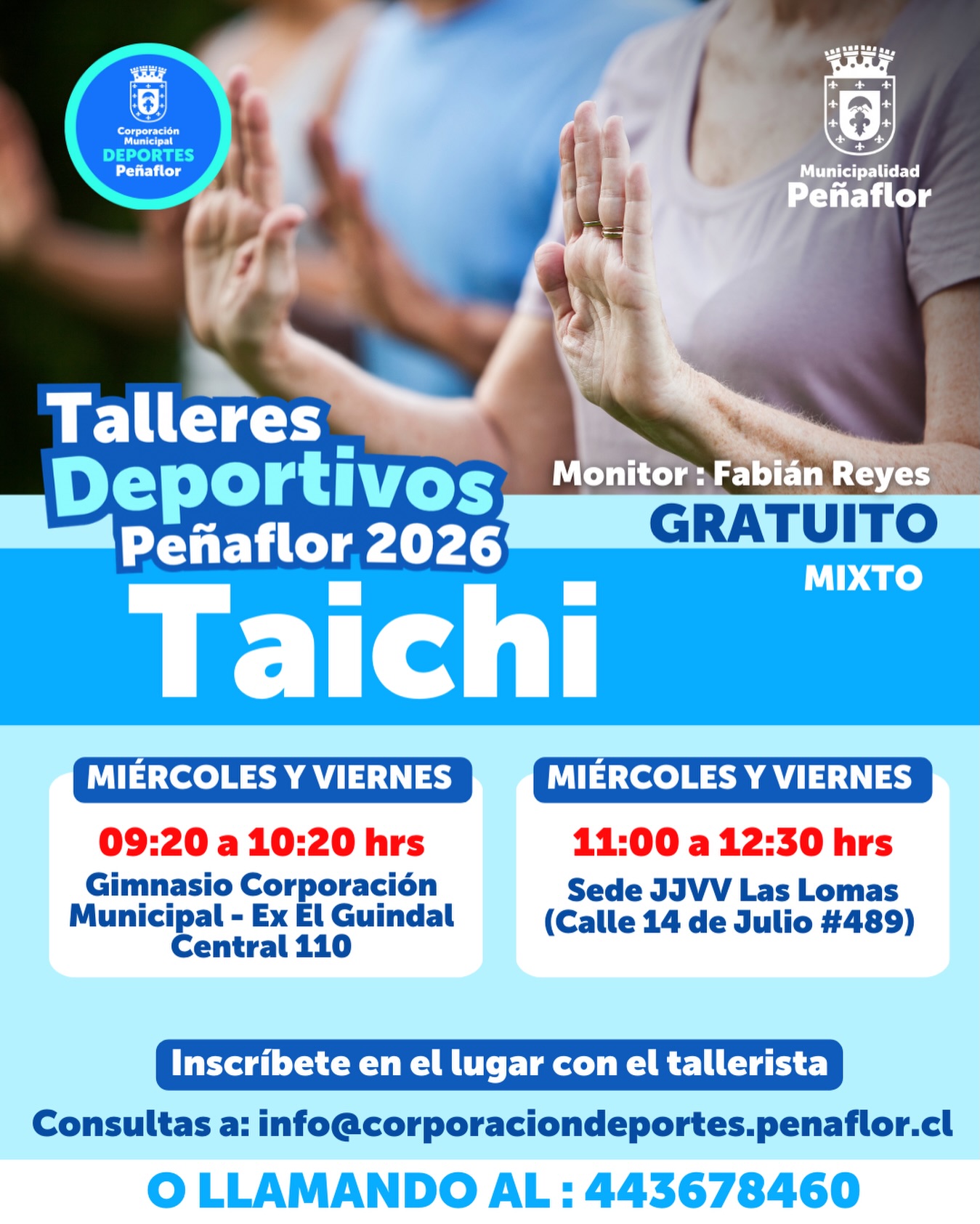 Consultas: info@corporaciondeportes.penaflor.cl